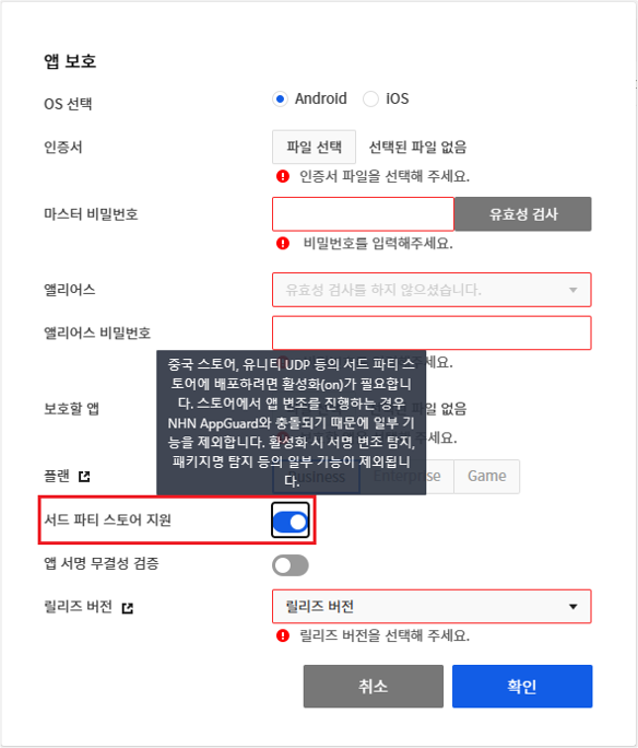 중국 스토어나 유니티의 UDP를 사용하여 앱을 출시하는 경우 서드 파티 스토어 지원을 활성화해야 합니다.