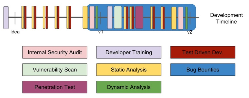 코드 보안을 효과적으로 개선하려면 아래과 같이 앱 개발 라이프 사이클 전반에 걸쳐 다양한 방식으로 보안 위험을 줄임으로써