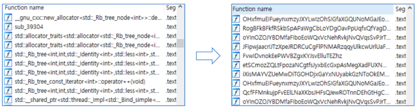 SO 강화는 ELF 파일의 내부 코드 (C.C++) 커스텀 패킹 (실행 압축 + 암호화) 진행하며, 쉽게 분석 가능한 심볼 정보를 난독화하여
