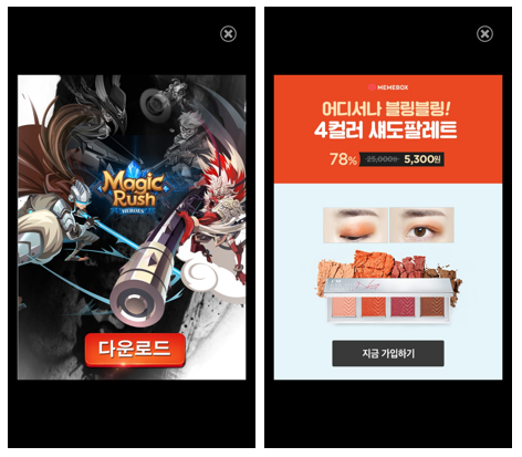 | <그림 1> 강제 광고 노출 | <그림 2> 삭제 방해 |