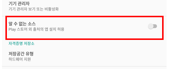 | <그림 7> 정식 마켓 | <그림 8> 출처를 알 수 없는 앱 설치 설정 (안드로이드) |