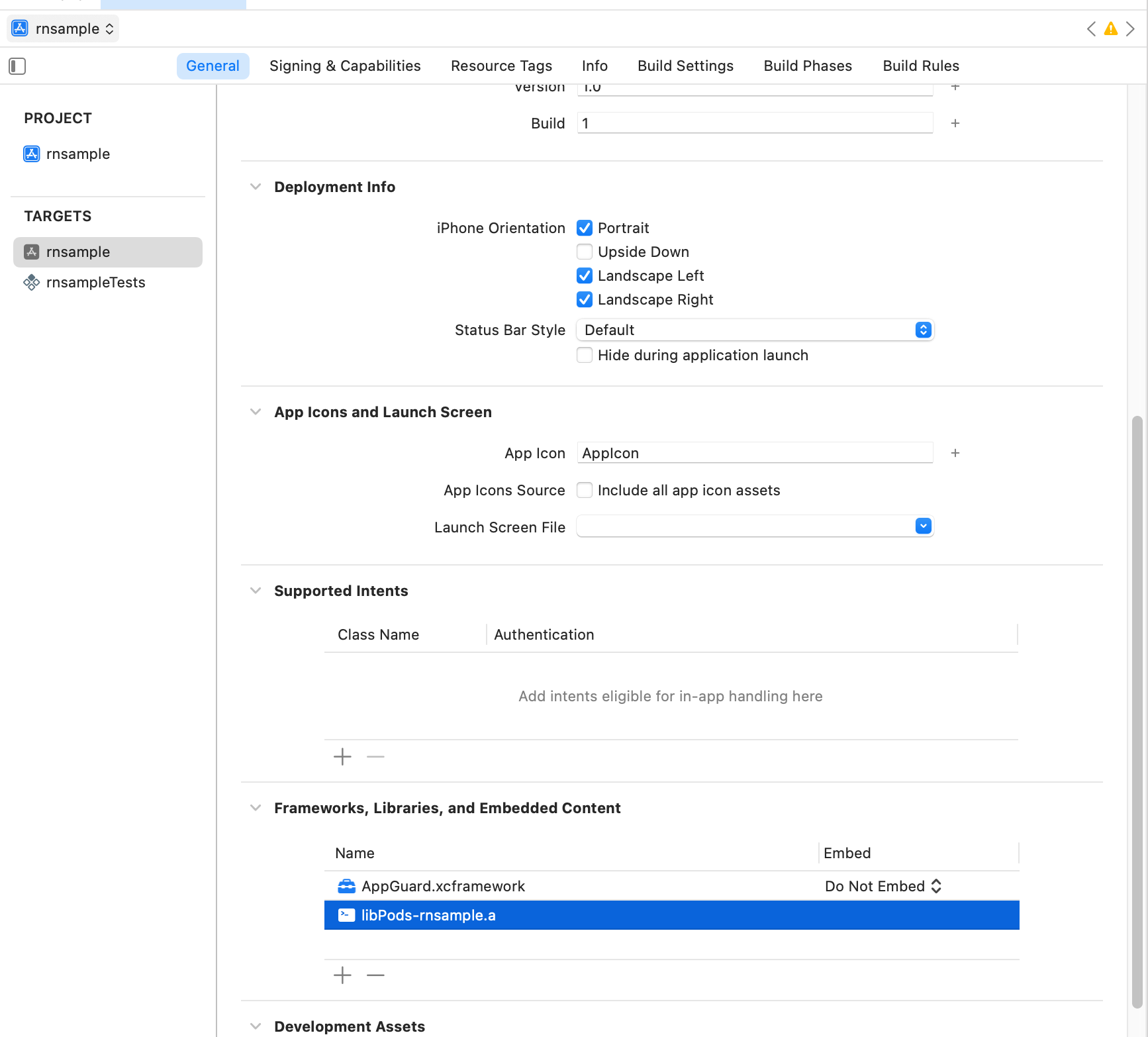 xcode프로젝트에서 다운로드한 iOS SDK의 AppGuard.xcframework를 추가합니다.