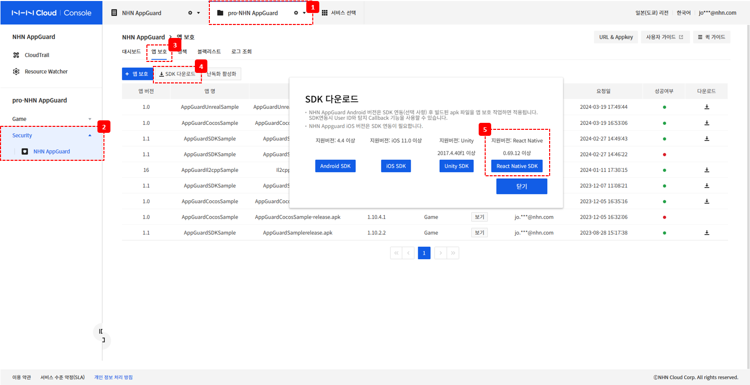NHN AppGuard React Native SDK 다운로드